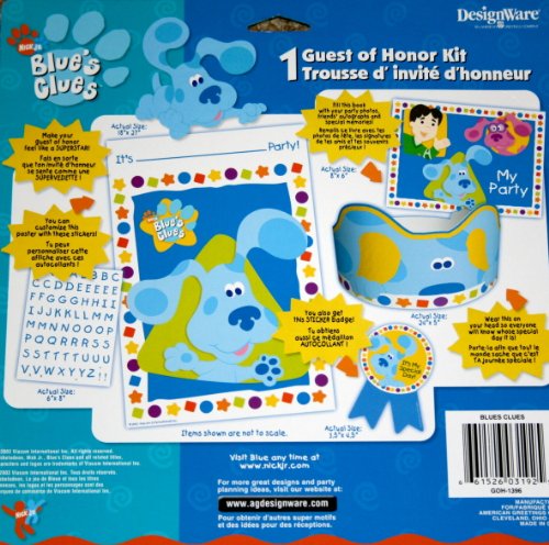 Brand new in package Blues Clues Guest of Honor Kit Come with Sticker Badge 35 x 45 Poster 18 x 27 Stickers 6 x 8 Hat 24 x 5 My party Book 8 x 6 Read More..